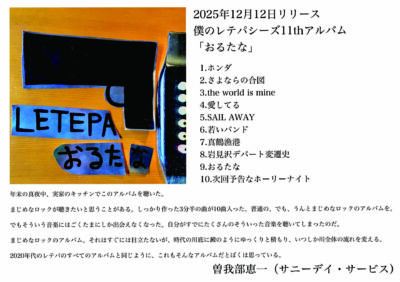 ・11thアルバム「おるたな」リリース!(CD通販は準備中です、、もう少しお待ちを!)